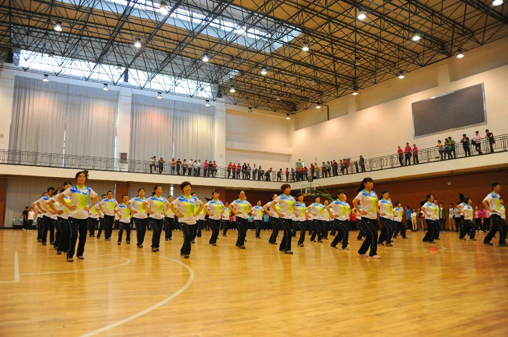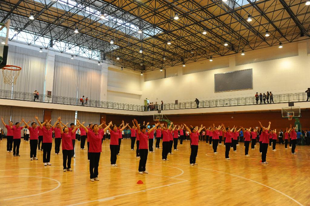 本次比赛共有22支教工代表队和17支学生代表队参加。比赛中,各代表队队员精神抖擞,动作有力,整齐划一,展现了健身的成果与昂扬的精神风貌。