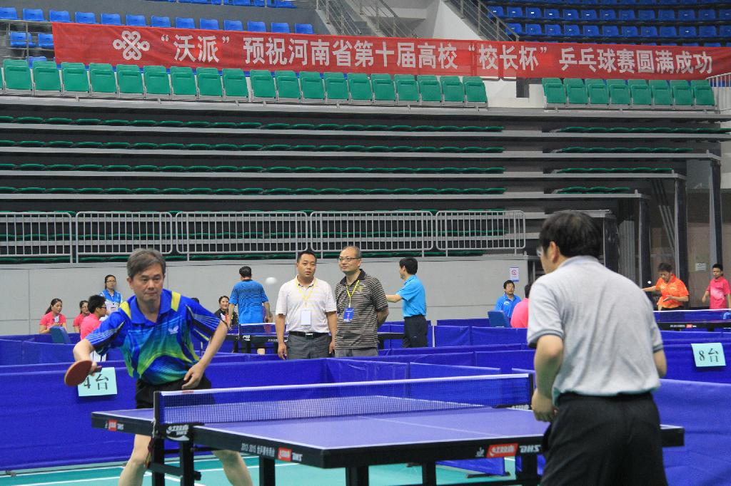 校领导在乒乓球比赛现场