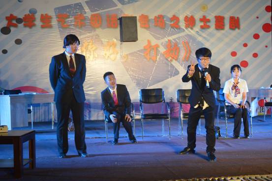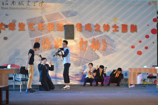 伴随着洪亮的钟声,大学生艺术团绅士喜剧《你好,打劫!》拉开帷幕。话剧讲述了两个率真善良的“劫匪”、四个个性迥异的银行职员、众多唯利是图的皇家FBI、无数谨小慎微的民众的偶遇、相遇、艳遇和遭遇。他们的焦虑和迷失、冲动和欲望、压抑和暴戾、叛逆和温情罗列、交织、纠结在一起。精彩的剧情折射出社会、家庭、经济、民生、哲学及现实等大量信息,带给观众以心灵的震撼和对人生、梦想、社会的深刻思考。整场演出过程中,演员的表演惟妙惟肖,对角色心理的把握恰如其分,精彩表演不时博得阵阵热烈掌声。