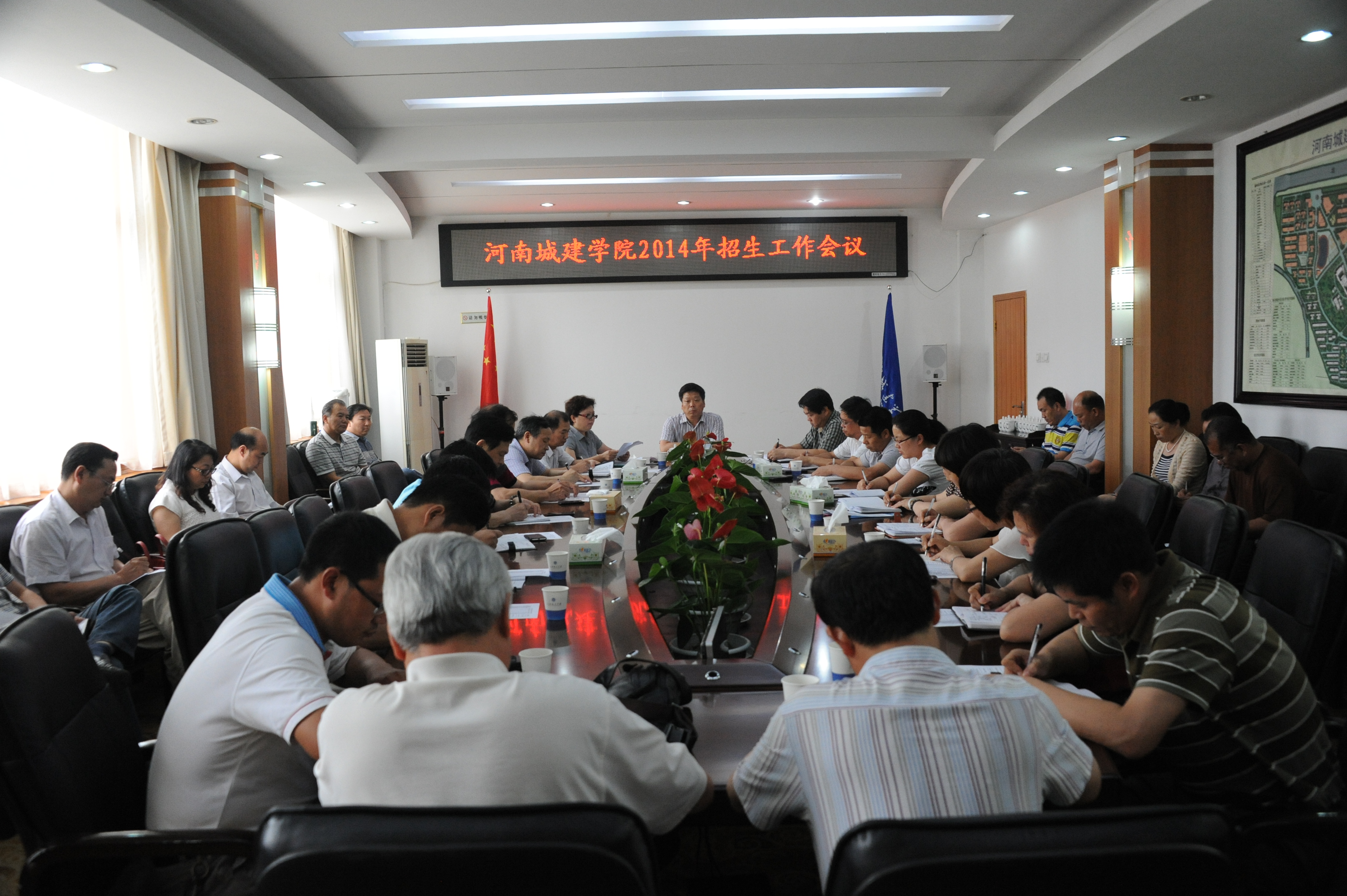 (通讯员 何燚)6月19日下午,我校在第二会议室召开2014年招生工作会议。副校长赵金安出席会议并讲话,招生工作领导小组全体成员和相关部门负责人参加了会议。会议由招生与就业指导处处长王靖主持。