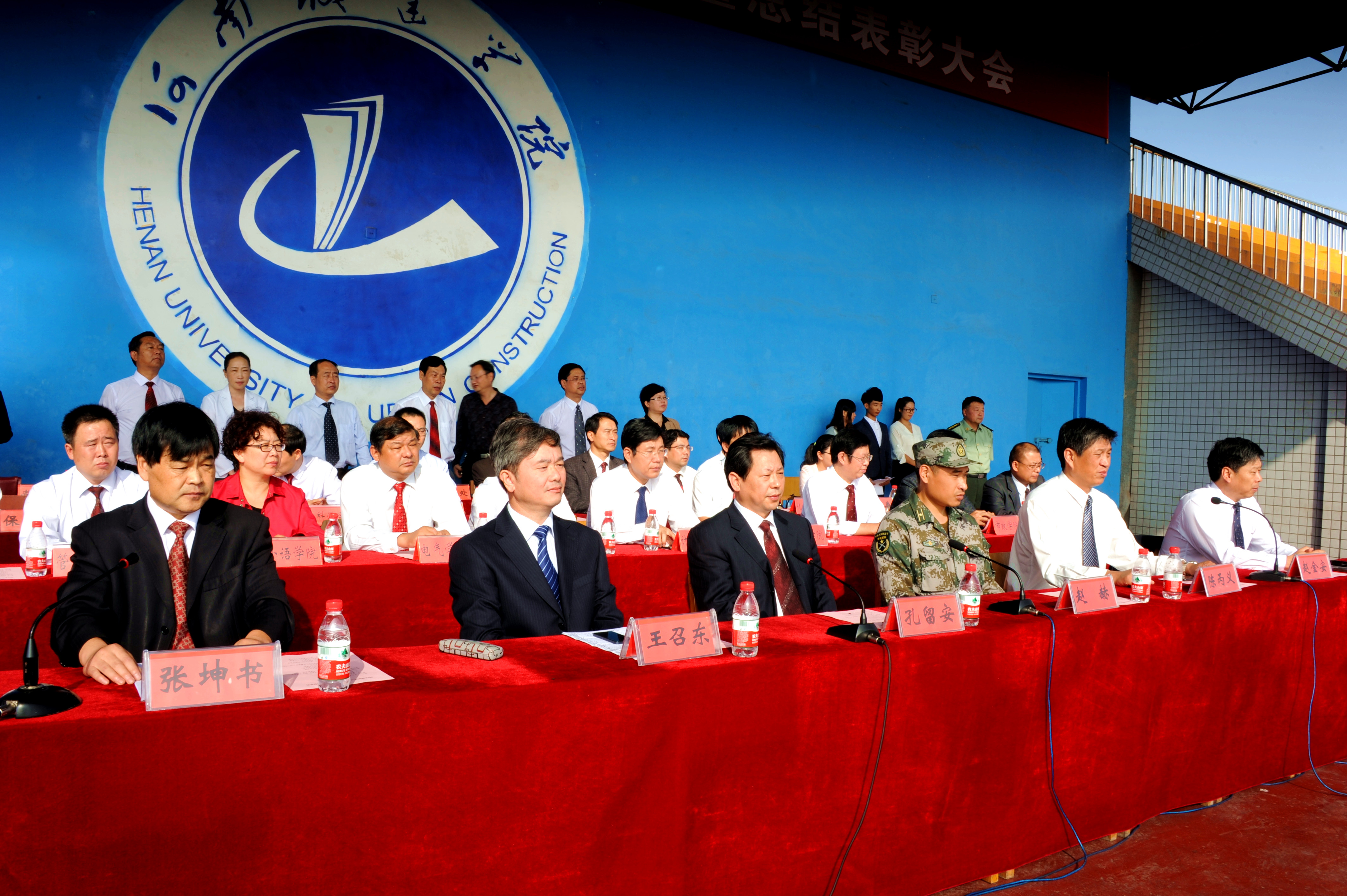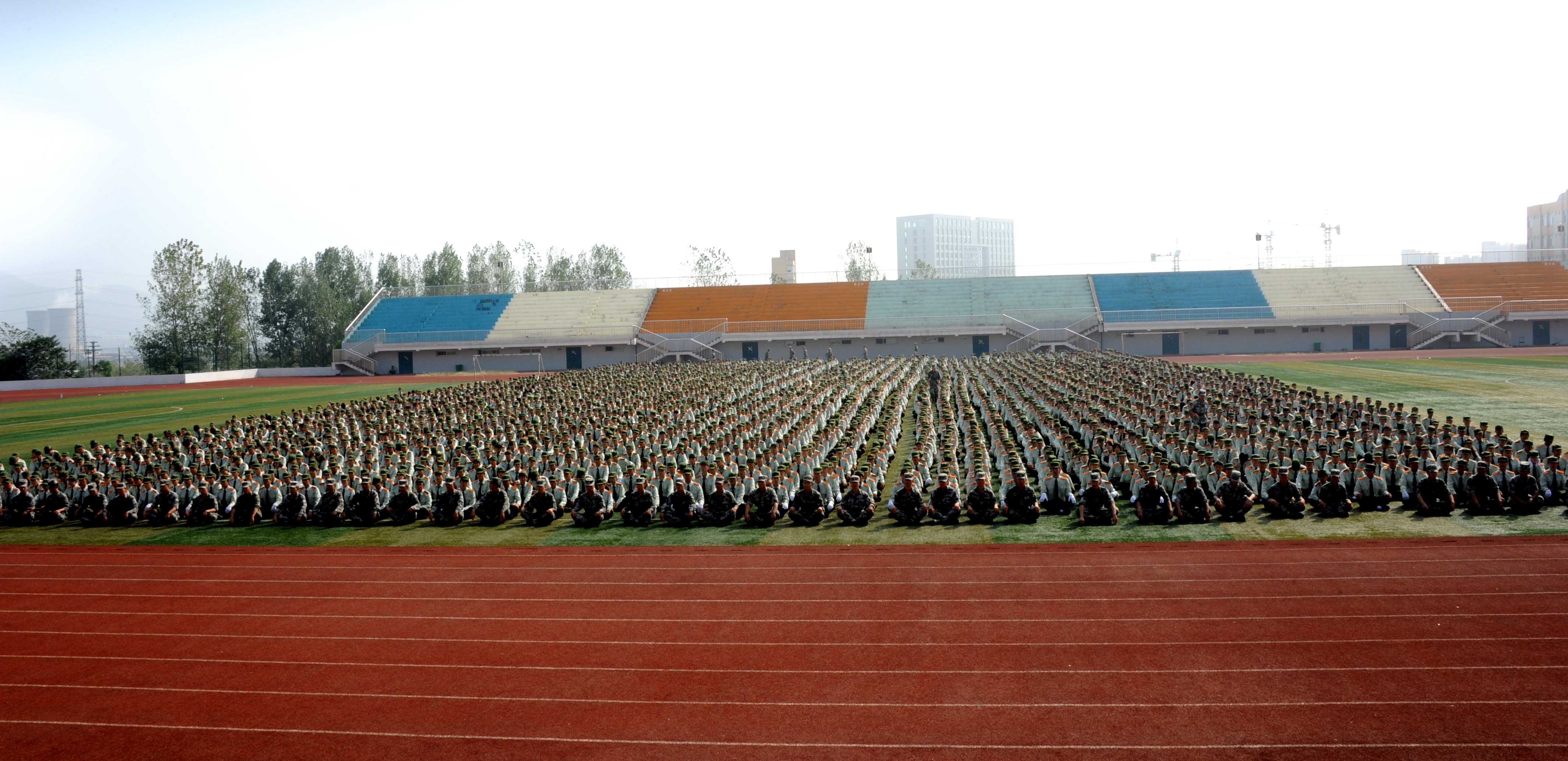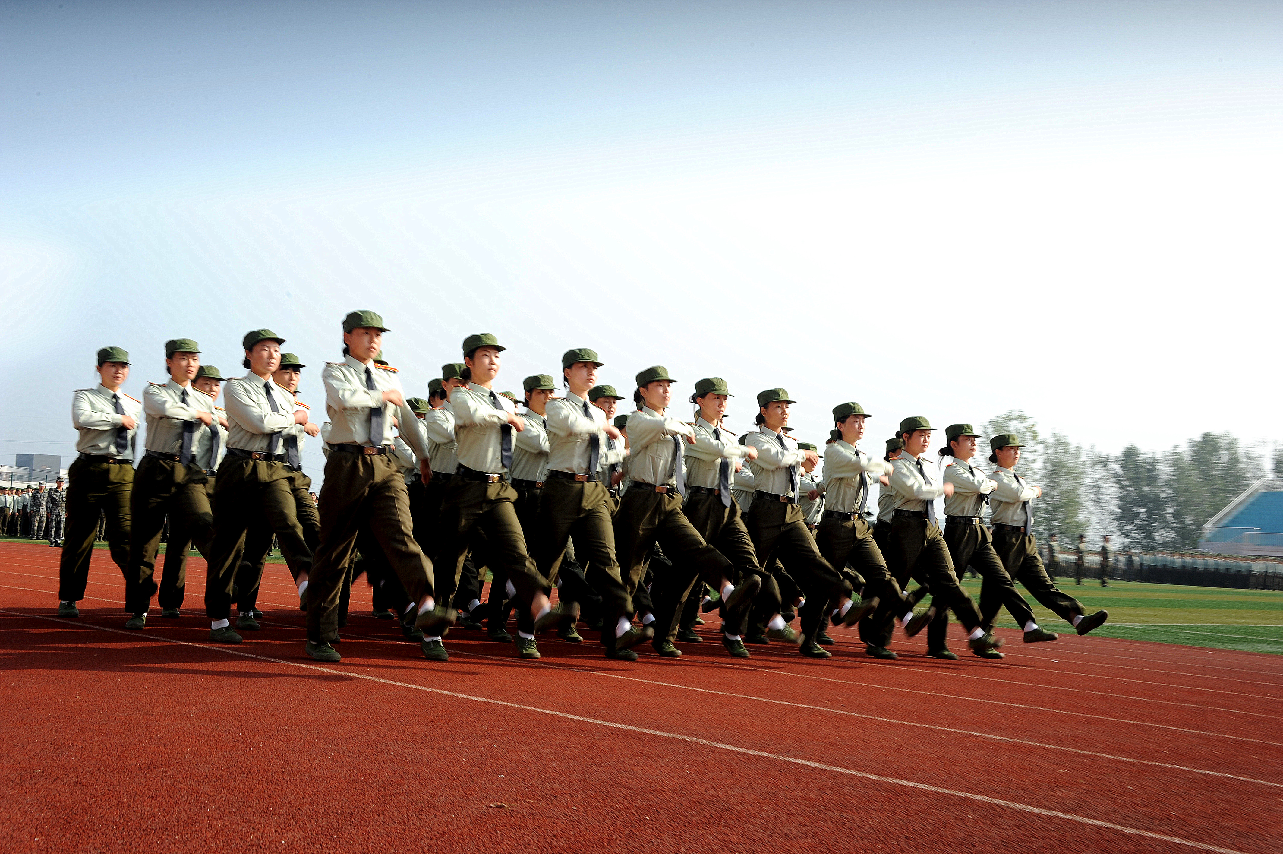 随后,校长孔留安在赵赫的陪同下,对42个参训方阵进行检阅。同学们整齐的动作、响亮的口号、挺拔的军姿展现了新生刻苦训练的成果和奋发向上、团结拼搏的精神风貌。
