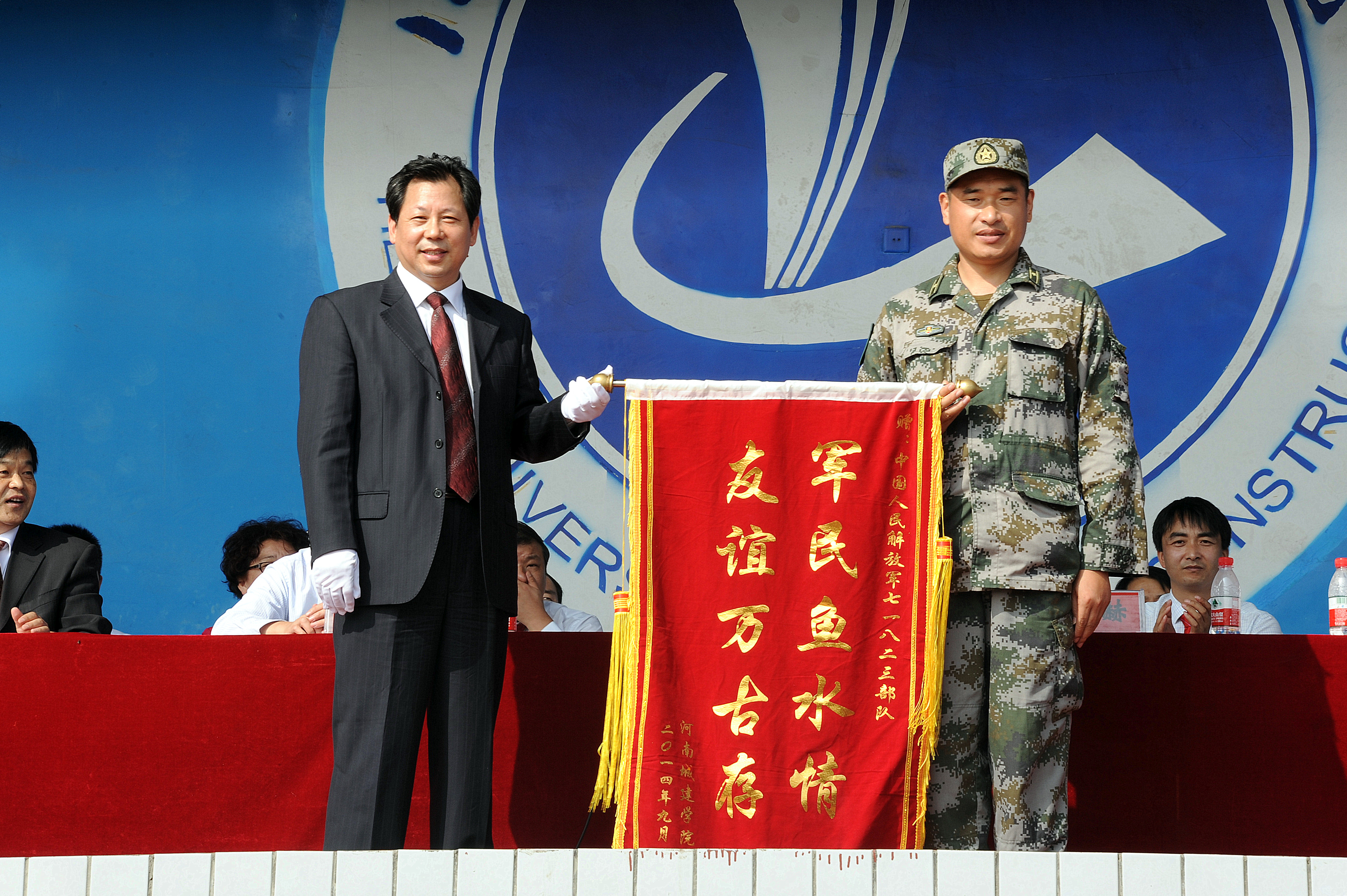 会上,孔留安向承训部队赠送了书有“军民鱼水情、友谊万古存”的锦旗,表达了学校对全体承训官兵的敬意。