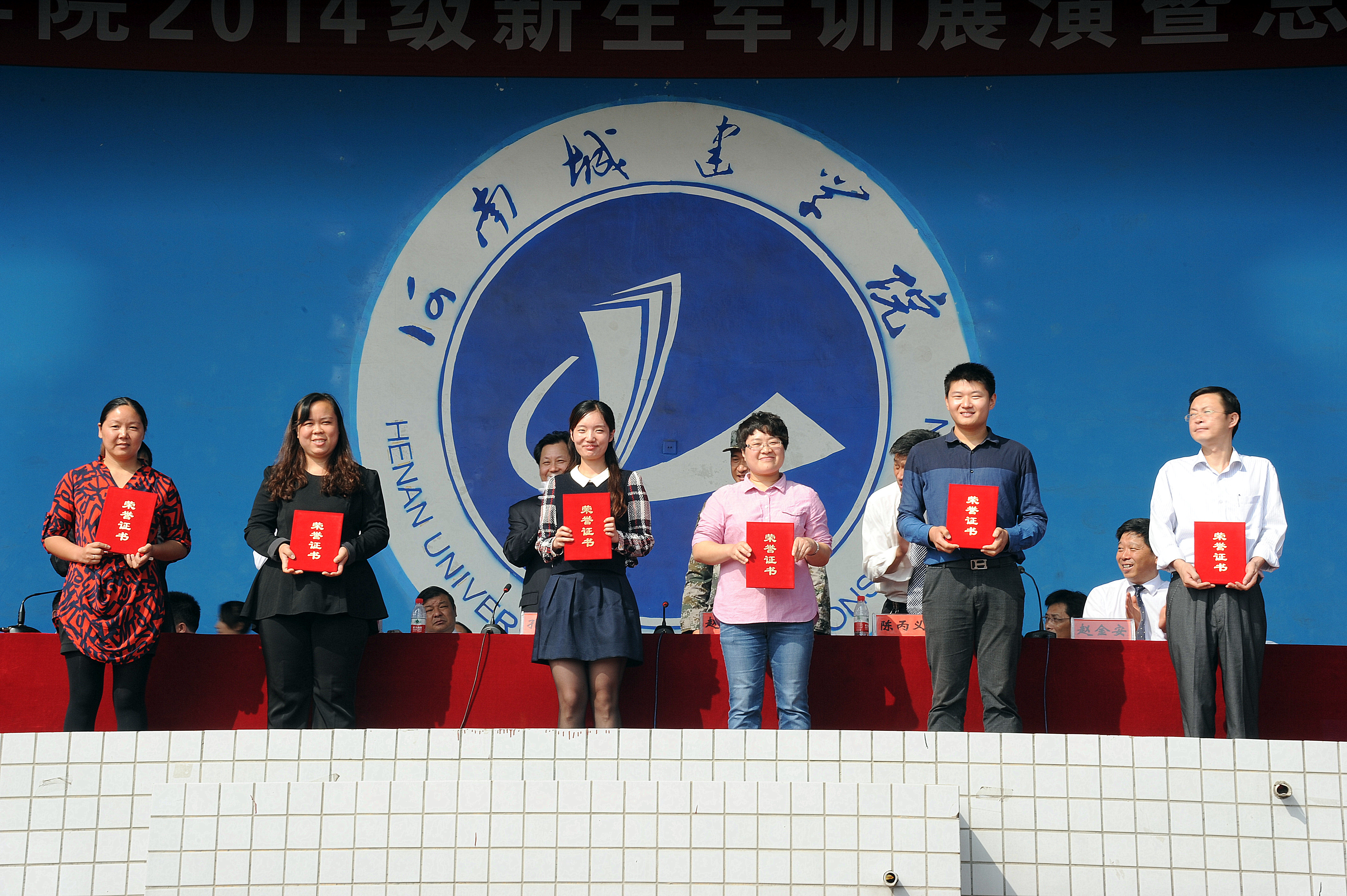 分列式结束后,副校长陈丙义宣读了2014级新生军训工作表彰决定。大会对军训工作先进集体和先进个人进行了表彰。
