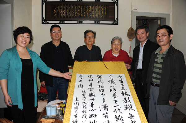 校党委副书记王召东、工会主席许朝民带领退管处、校工会等相关人员先后看望慰问了符九龙、刘九龄同志。在符九龙同志家里,送上了精心准备的由袁卫国同志构思创作、米启伟老师书写的一幅书法作品。退管处的同志受校领导委托看望了于朝忠、孙万申、樊菊湘等老同志。