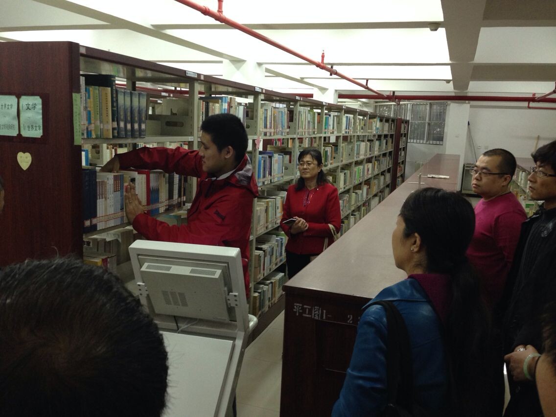 李长萍一行参观考察了图书馆大厅、自助借还总服务台、24小时还书分检设备、阅览室、书库、采编部、图书馆中心机房等。袁新芳就我校图书馆的发展现状、机构设置、文献资源建设、RFID智能管理系统建设等方面的情况向李长萍作了详细介绍。双方部门负责人就图书馆管理服务模式、RFID技术在图书馆的应用展开了广泛深入的交流和探讨。