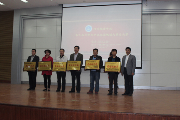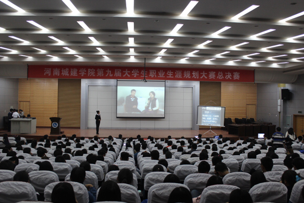 (通讯员 刘娜)10月31日下午,我校第九届大学生职业生涯规划大赛总决赛在学术报告厅举行。副校长赵金安出席大赛并讲话。河南省大中专学生就业服务中心政策研究室主任文正建、河南省一建集团有限公司人力资源处处长陈文宇、新奥集团开封分公司人力资源部主任田波亚、苏宁电器平顶山分公司人力资源部部长马陆艳、河南亿嘉控股集团总经理王刚和我校招生就业处副处长闫继涛担任评委。招生就业处和各学院负责人、就业专兼职教师及近500名学生观看了比赛。