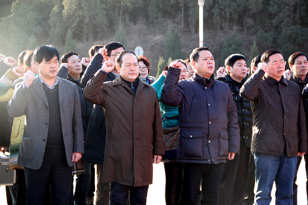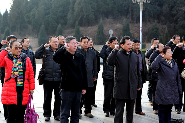 西柏坡与井冈山、瑞金、遵义和延安并称为中国的五大革命圣地,1948年5月,毛泽东同志率领中共中央、中国人民解放军总部移驻这里,在这里指挥了震惊中外的辽沈、淮海和平津三大战役,召开了具有历史转折意义的七届二中全会,向全党发出了“两个务必”的号召。学习期间,全体学员先后瞻仰了中共中央旧址、西柏坡纪念馆、廉政教育馆、国家安全教育馆、丰碑林。在西柏坡纪念馆广场前,党委书记李德平、校长孔留安代表学校向伟人敬献花篮,表达了崇高的敬意和深切的缅怀之情。全体党员在鲜红的党旗下重温了入党誓词。