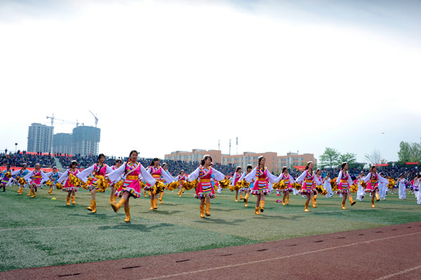 在欢快、动感的音乐声中,同学们表演了大型团体操武术、民族团体操《爱我中华》等,展现了朝气蓬勃、昂扬向上的精神风貌。