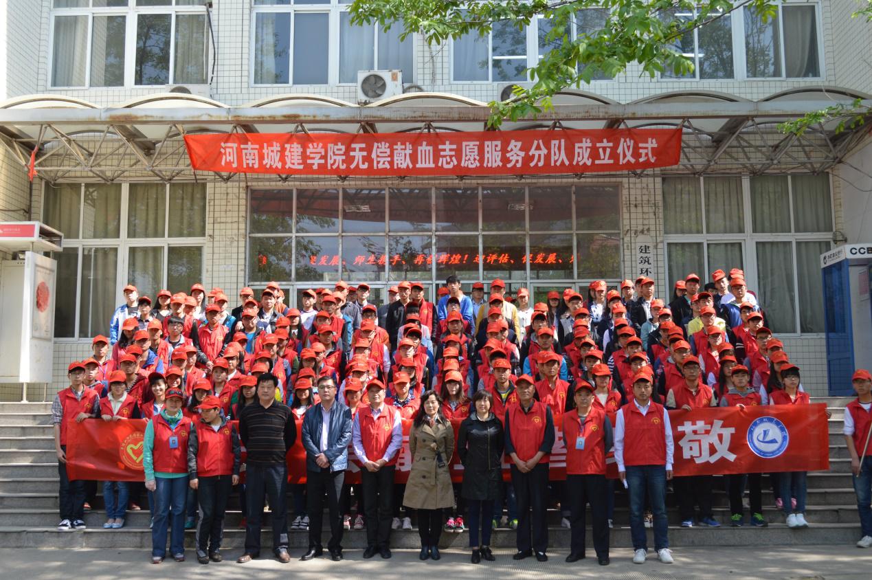 (通讯员 胡思博)4月14日下午,平顶山市无偿献血志愿服务队河南城建学院分队成立仪式举行。市中心血站站长何天辉,副站长杨洋、赵民霞,市无偿献血志愿服务队总队长程相斌、校团委副书记赵笑声及全校300余名无偿献血服务队成员参加仪式。