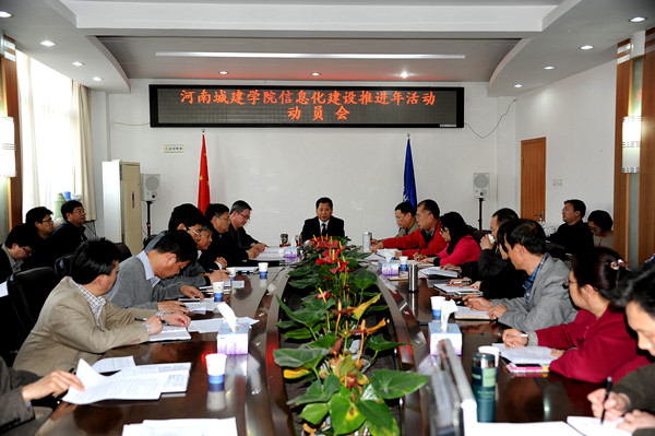 (通讯员 王细薇)4月20日下午,我校在第一会议室召开信息化建设推进年活动动员会,对2015年信息化建设推进年活动做了全面部署。校长孔留安、党委副书记王召东、副校长王春阳出席会议,机关相关部门负责人和各学院院长参加会议。会议由王春阳主持。