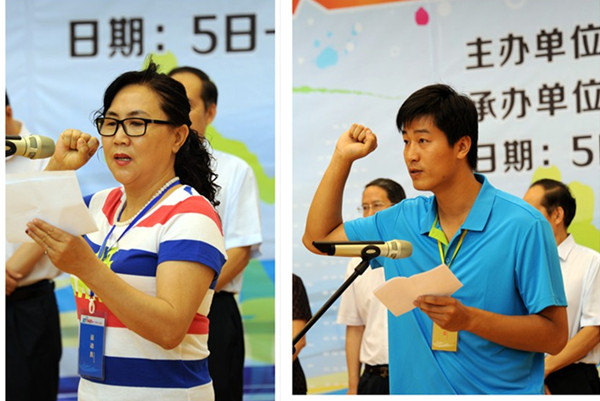 洛阳理工学院陈冬梅、我校邢佟佟分别代表运动员和裁判员宣誓。