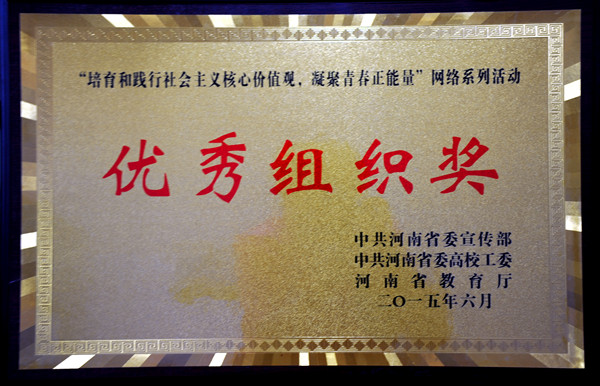 近日,由省委宣传部、省委高校工委、省教育厅联合举办的“培育和践行社会主义核心价值观,凝聚青春正能量”网络系列活动评选结果揭晓,我校荣获优秀组织奖,共有174件作品获奖,居全省高校前列。