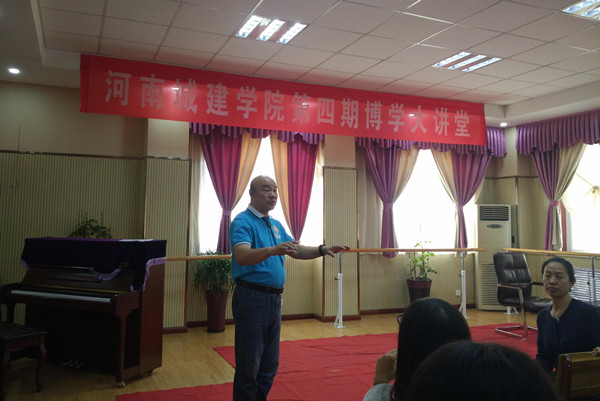 (通讯员 刘培培)10月18日,我校第四期博学大讲堂在校大学生艺术团排练厅开讲,著名指挥家、作曲家、河南大学艺术学院硕士生导师陈家海教授应邀作《合唱指挥的基本知识和技巧》专题讲座。校团委有关人员、公共艺术教研室教师、铺路石大学生合唱团成员、各学院学生合唱骨干一起听取讲座。