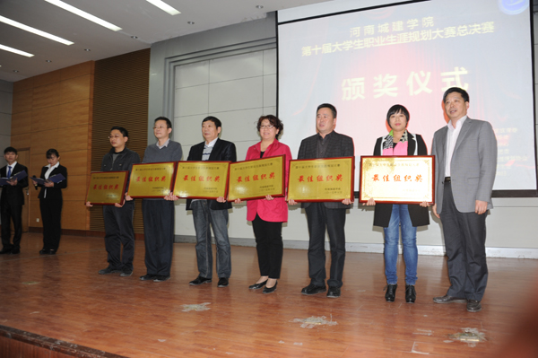 (通讯员 刘娜)10月30日下午,我校第十届大学生职业生涯规划大赛总决赛在学术报告厅举行。副校长赵金安出席大赛并讲话。郑州大学职业发展教研室主任王献玲教授,河南师范大学就业指导服务中心副主任冯峰教授,中国水利水电三局人力资源部副主任魏山河,58同城平顶山公司、河南智胜网络总经理邵现军,我校招生就业处副处长闫继涛,学生处副处长张大力,团委副书记赵笑声担任评委。招生就业处、教务处、科研处、学生处、团委等相关职能部门和各学院负责人、就业专兼职教师及近500名学生观看了比赛。