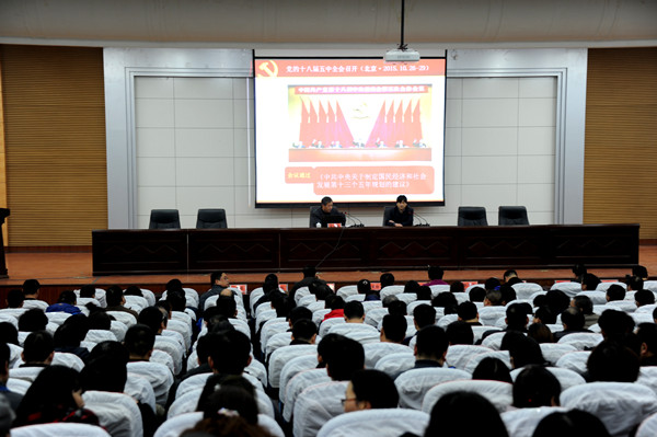 会上,李建华从党的十八届五中全会和中共中央《关于制定国民经济和社会发展第十三个五年规划的建议》及全面建成小康社会的重大意义和目标要求,“十三五”时期经济社会发展的指导思想、基本原则、发展理念,“十三五”时期经济社会发展的各项任务和重大举措,以及切实加强党的领导、为经济社会发展提供坚实保障等方面,对十八届五中全会精神进行了深入系统的解读和辅导。报告主题鲜明、内容翔实、紧贴实际,既有理论高度、思想深度,又有现实的针对性、指导性,对我校党员干部和广大师生更好地学习领会、贯彻落实党的十八届五中全会精神,做好当前和今后一个时期的各项工作,具有积极指导作用。