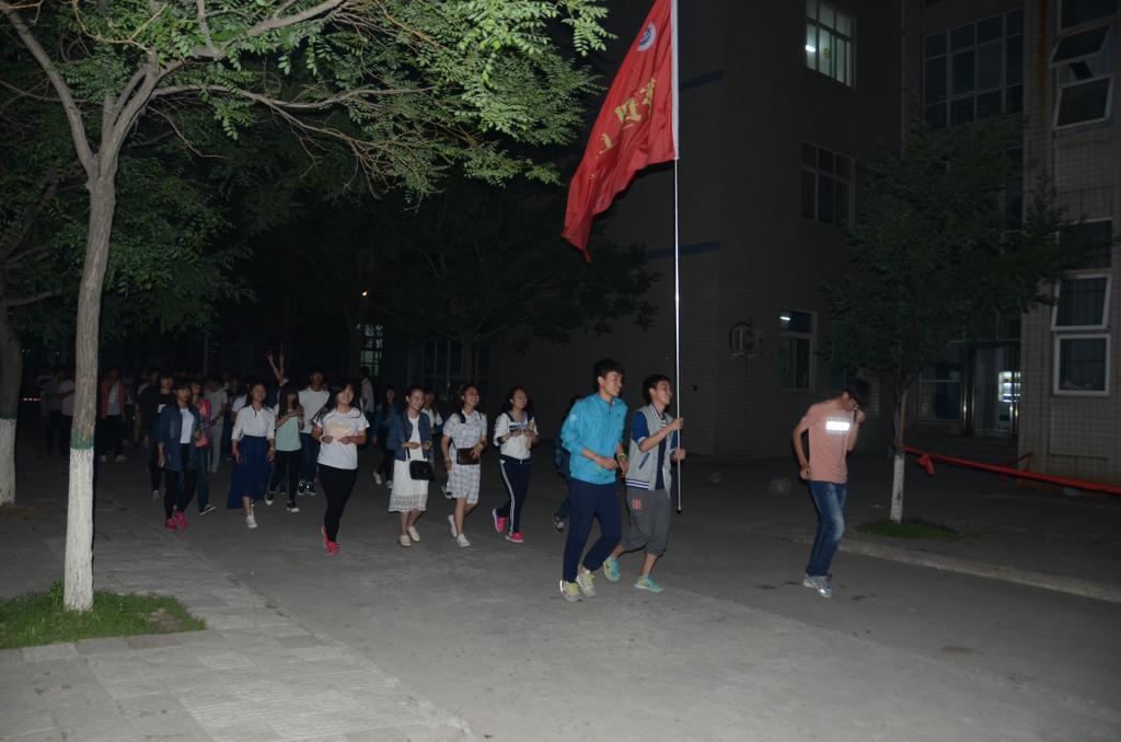 夜跑路线从八号楼出发,行至校医院、布芳园餐厅、行政楼国旗台等地,终点为八号楼,环绕学院一周。活动虽然采取自愿方式进行,但吸引了越来越多的同学参与进来,同学们挥舞着五彩的荧光棒,形成了一道亮丽的风景线。