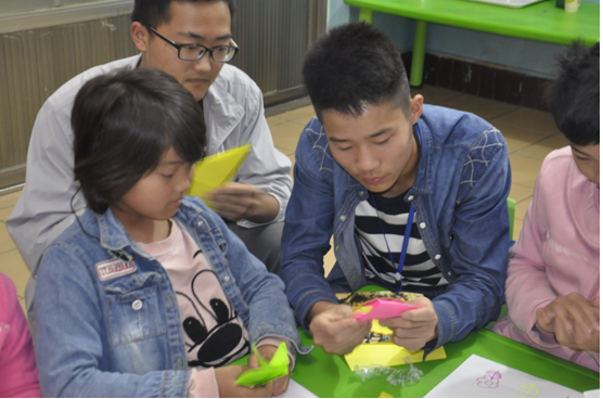 康复中心的大多数孩子听力受损程度各不相同,有的小朋友完全可以和志愿者对话,有的小朋友却要看口型慢慢地理解。在这里,志愿者们和小朋友一起学写字、学画画、做手工……和他们玩得不亦乐乎;在这里,小朋友们和志愿者热情地打招呼,骄傲地把画好的作品展示给志愿者,也会笑容灿烂地和志愿者们进行交流。
