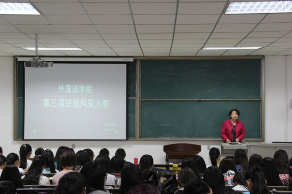 (通讯员 张梦圆 范丽娜)为提高同学们的创造力和凝聚力,5月27日下午,外国语学院于文管学区326教室举行第三届班级风采大赛,外国语学院党总支书记袁晓、团总支负责人、学工办主任以及辅导员老师担任评委,全体大一、大二、大三同学参加活动。