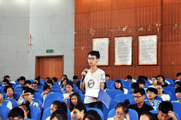 当天上午,何炎祥、何婷婷与学生在图书馆报告厅进行交流。交流会以问答形式就考研、就业、专业方向、导师选择、面试注意事项等进行交流。两位教授通过分析社会的就业和考研现状为同学们提供了很多建议,并耐心回答了学生的各种疑问。有学生提出面试需要注意什么时,何炎祥认为,面试时候要不卑不亢,显示出自己的专业优势,突出自己的长处,不要因为面试官的问题而不知所措,同时要做好充分准备。针对学生提出的考研中老牌院校和普通院校是否存在差异,何炎祥指出,在考研面试过程中,考生面试时候的表现更为重要,面试是对学生综合素质的考察,自信应对面试,才有更大的机会被录取。计算机学院考取华中师范大学研究生的同学专程赶回学校,与何婷婷在会上就导师的选择事宜进行了交流。