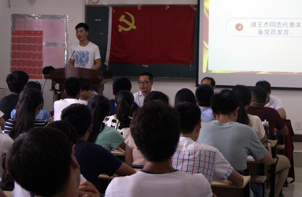 下午四点钟,宣誓大会在国际歌中拉开帷幕。大会宣读了本学年发展党员名单;到场所有党员同志面对党旗,举行了庄严的宣誓仪式;在党员代表发言结束后,尹振羽向所有党员同志提出希望:同志们不要辜负党组织的期望,发扬党的优良传统,牢记全心全意为人民服务的宗旨,在各自岗位上加倍努力,充分发挥党员的先锋模范作用,无愧于共产党员的光荣称号。大会在庄严肃穆的国歌声中圆满落幕。