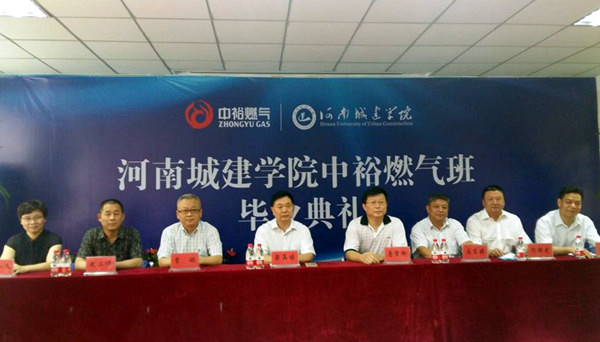 (通讯员 李凯)6月21日上午,我校成人高等教育2016届中裕燃气班毕业典礼在焦作中裕燃气有限公司举行,副校长梁再培、中裕(河南)能源控股有限公司总裁鲁肇衡出席典礼并讲话。我校继续教育学院、能源与建筑环境工程学院、中裕公司有关人员和99名毕业生参加典礼。