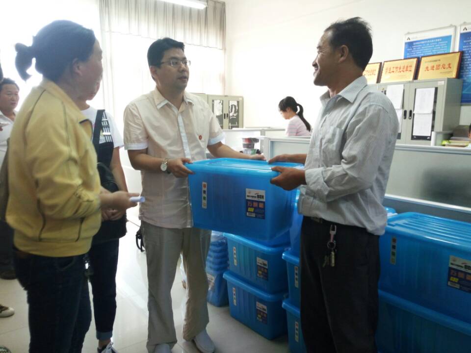 本次活动为大一贫困学生发放爱心蓝箱30个,内有牙膏、脸盆、洗衣粉、香皂、毛巾等日常生活用品。