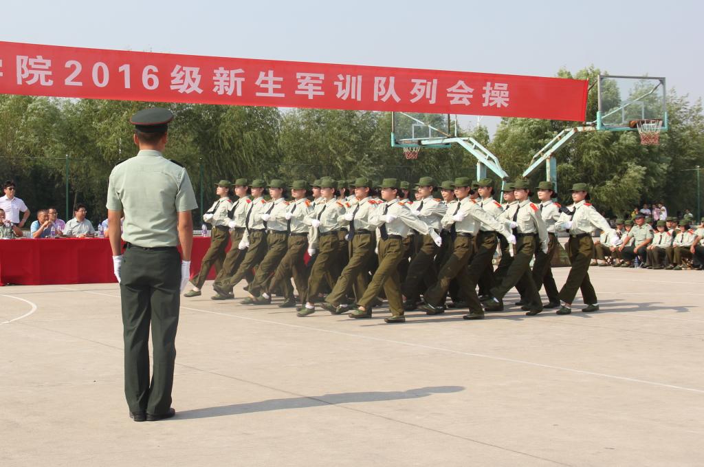 (通讯员 田果果 董慧景)9月23日下午,我校在篮球场举行2016级新生军训会操比赛,外国语学院与其他各学院共同参加本次会操比赛。外国语学院党总支书记袁晓及副书记于修涛亲临现场为同学们加油助威。