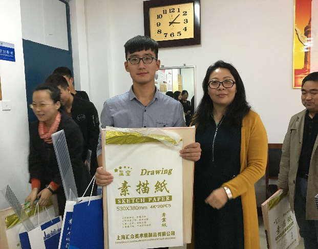 座谈会结束后,学院领导、各专业教研室主任及辅导员为困难生发放了专业绘图工具包。