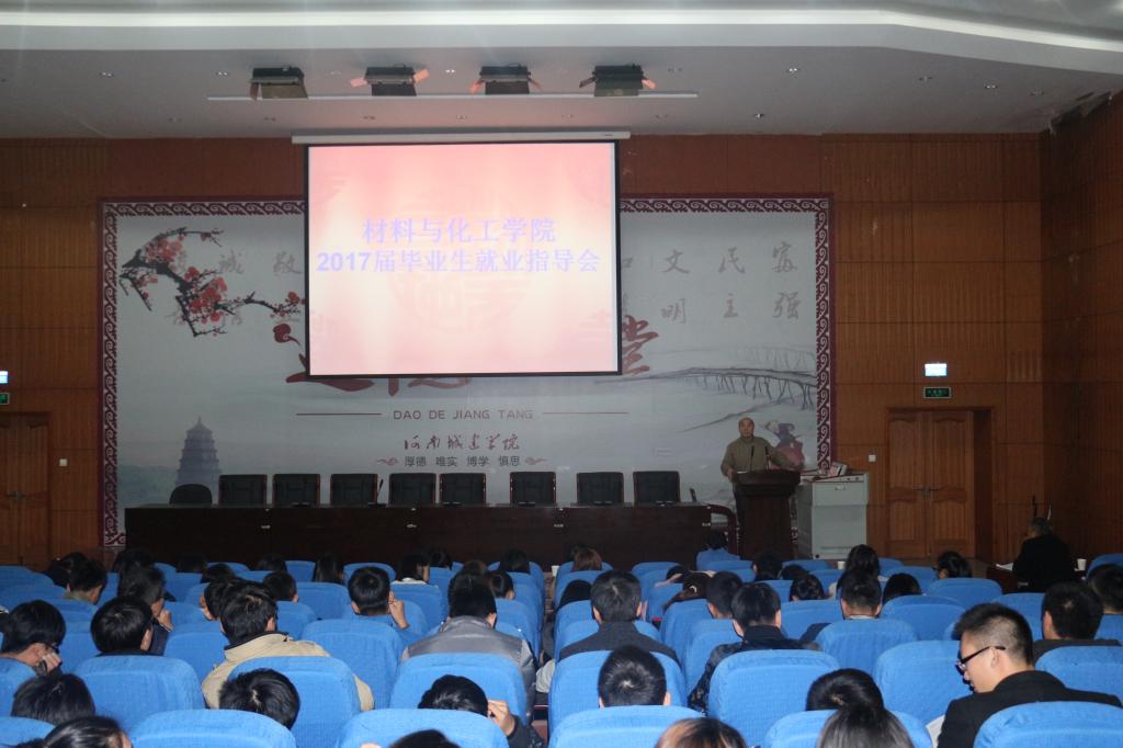 (通讯员 吴旋)为进一步指导毕业生对就业与考研方面知识的了解,10月30日下午,材料与化工学院在图书馆报告厅举行2017届毕业生就业指导会。学院党总支书记牛季收,院长赵海鹏亲临会场为同学们介绍就业知识,解决毕业生面临的问题,学院全体大四毕业班学生聆听指导会。