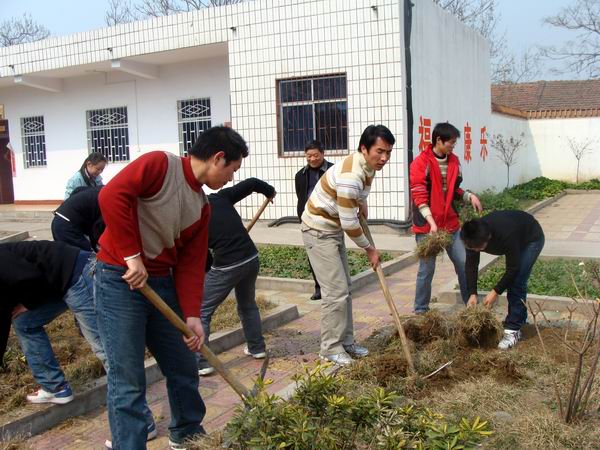 志愿者们刚赶到敬老院,顾不得乘车的疲惫,马上展开了活动,队员们分成三组,打扫房间、整理庭院、帮助老人洗衣服,个个忙的不亦乐乎。在敬老院负责人的指导下帮助老人们把几块荒废的土地改造成了菜园,志愿者们不怕脏不怕累,有的翻土,有的锄草,还有些同学直接用手当成了工具,把从菜园地里翻出的草和垃圾装上推车清理干净。