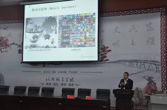 (通讯员 刘高旗)为使学生深入了解DIKW体系、更好地融入互联网时代,创造常态化的学术和技术创新环境,12月7日晚,计算机与数据科学学院在图书馆学术报告厅举行DIKW大讲堂启动暨第一场学术报告。北京沃瑞达公司负责人冉伟做了题为《移动互联技术与展望》的学术报告,计算机与数据科学学院院长何宗耀主持。