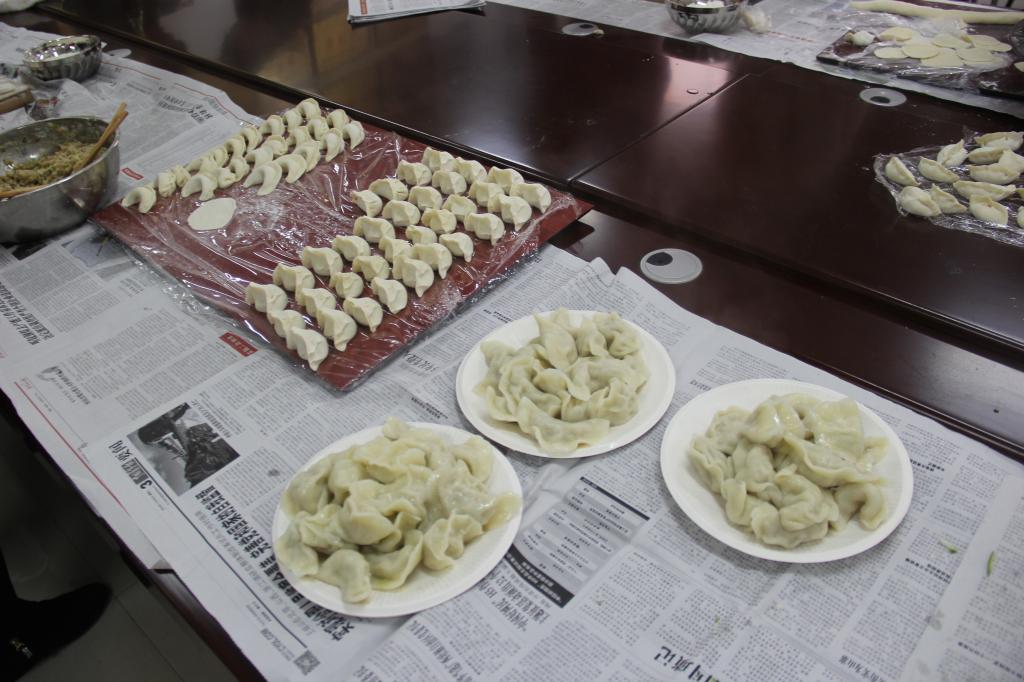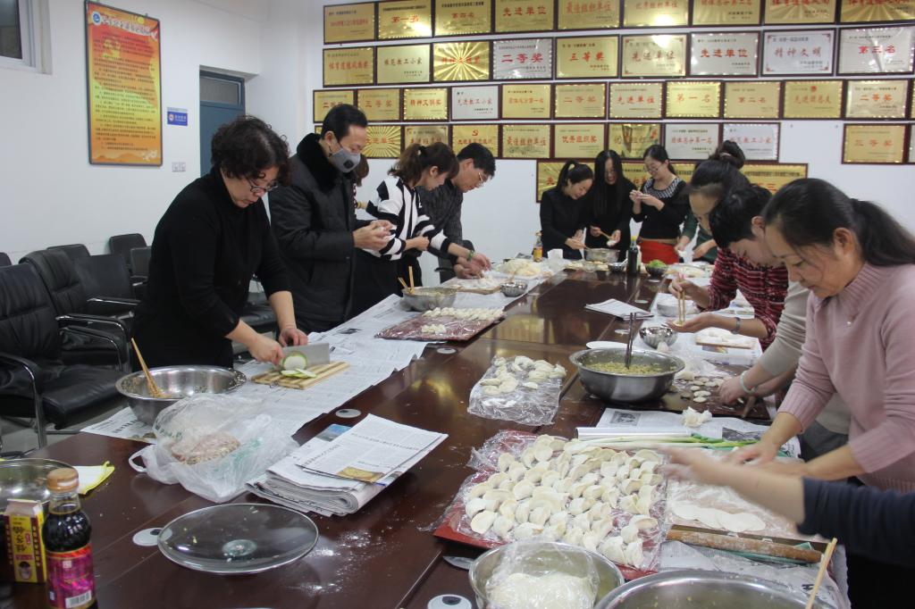 会议室里,在外国语学院分工会的精心筹备下,一场包饺子比赛正式开赛。大家一起动手擀皮、调馅、包饺子,不多会儿桌子上就整齐地摆满了各式各样饱满诱人的饺子。在包饺子比赛结束后,老师们先把煮熟的饺子送给了即将考研的学子,希望他们努力拼搏,在考试中获得佳绩。之后,老师们一边享用着美味的劳动成果,一边共话家常、展望未来。整个会议室充满了欢声笑语,洋溢着温馨祥和的气氛。