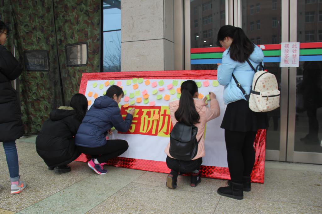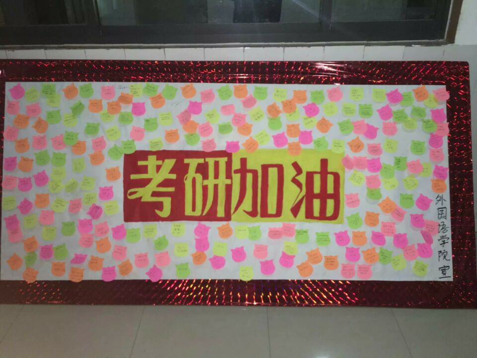 (通讯员 田果果 董慧景)为增强考研同学的自信心,外国语学院于研究生考试前夕在文官学区蓝青园餐厅门口开展“一句话为考研加油”活动。