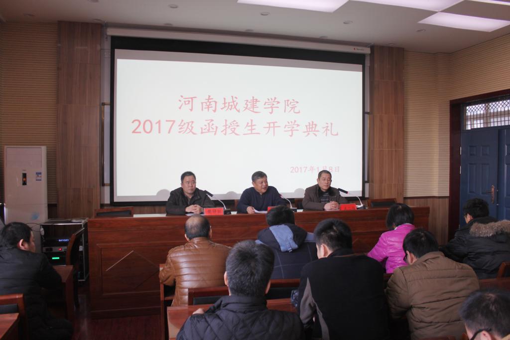 (通信员 李凯)元月8日下午,河南城建学院2017级函授新生开学典礼在继续教育学院多媒体教室举行。继续教育学院院长马东晓、党支部书记樊铮钰、副院长武二伟出席典礼,参加典礼的还有继续教育学院相关工作人员和100余名新生代表。典礼由武二伟主持。