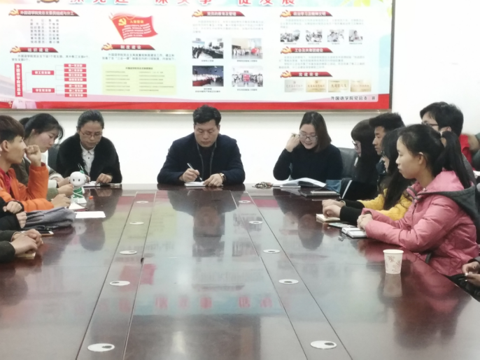 (通讯员 田果果 董慧景)20日晚,新学期第一天,为加强外国语学院学生干部队伍建设,更好的开展学生工作,外国语学院在文管校区1号教学楼306会议室召开青年学生干部培训会。外国语学院党总支副书记于修涛,团总支、学工办负责人,辅导员以及全体学生干部参加会议。