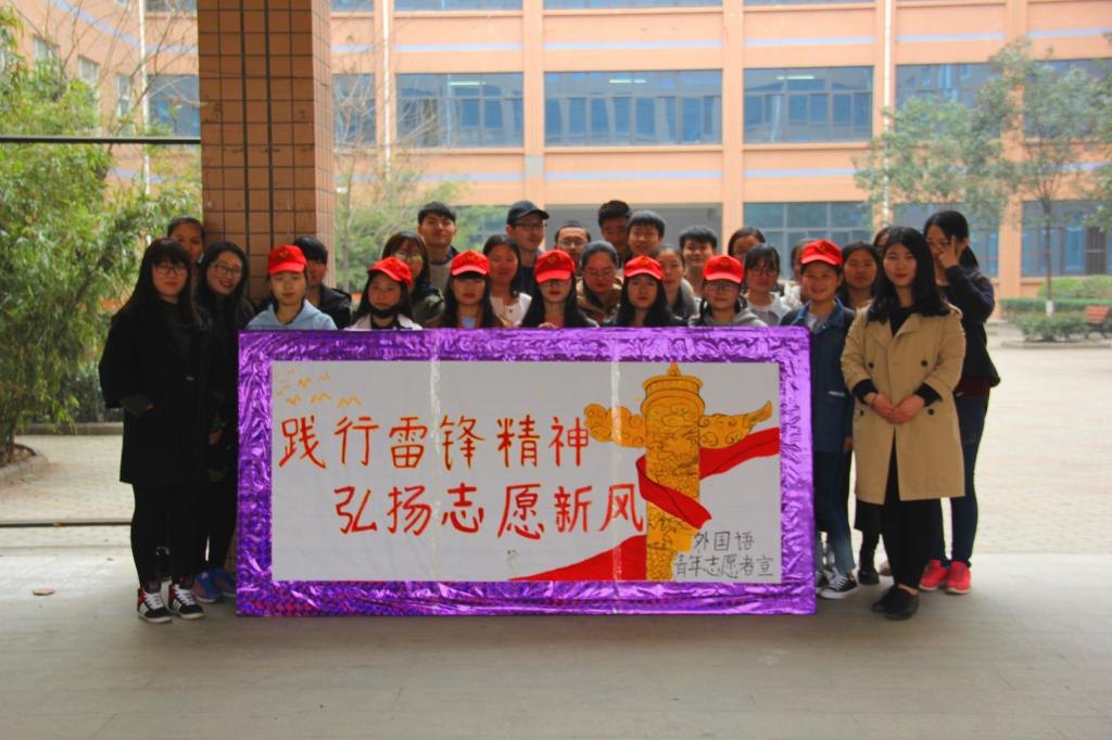 (通讯员 田果果 申娆)3月5日下午,外国语学院以“奉献、友爱、互助、进步”为主题在文管校区一号教学楼开展学雷锋志愿扫除活动,外国语学院青年志愿者参加本次活动。
