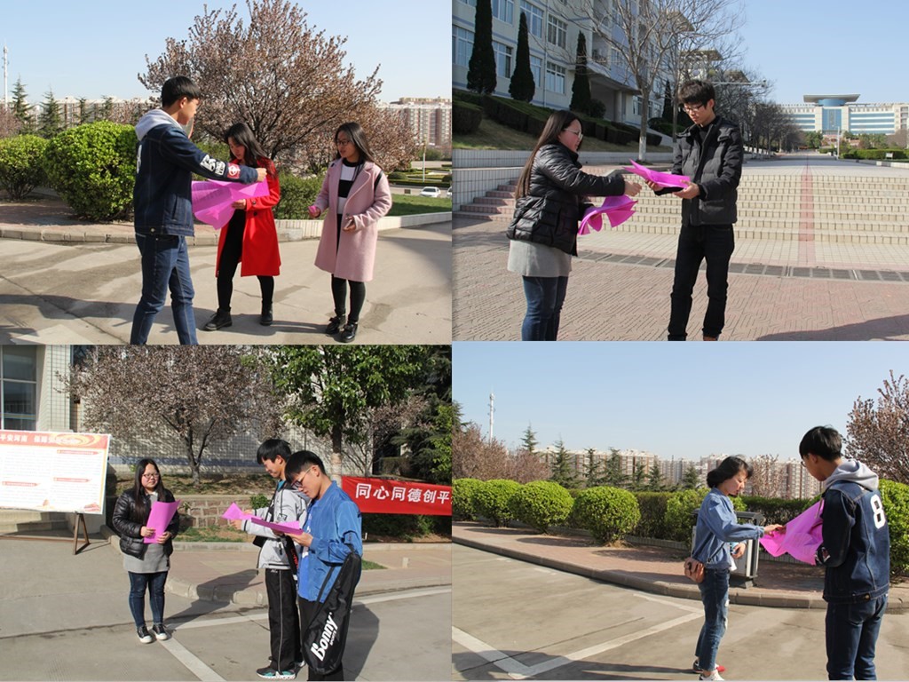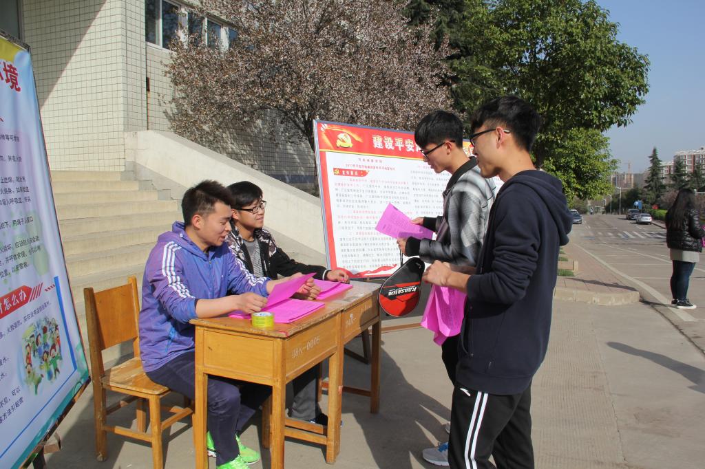 宣传活动由学院党总支书记吕鹏飞带队,集中围绕“宣传月”四大宣传重点进行,重点宣传党中央、省委关于综治和平安建设的重大部署,广泛宣传校、院开展社会治安综合治理和平安建设宣传工作的情况,并围绕治安热点、民生热点开展咨询。通过宣传条幅、制作“平安河南、平安校园”知识宣传展板、发放“大学生防盗防骗宣传材料”等形式进行宣传。同时,学院志愿者们耐心细致地解答师生咨询,广泛传播综治知识,得到了校平安建设检查小组的表扬,收到了良好的社会效果。
