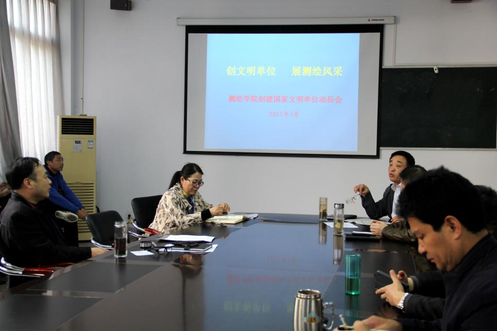 (通讯员 杨甲)为做好我校文明创建工作,3月28号下午,测绘与城市空间信息学院召开创建国家文明单位动员会,学院全体教师参加会议。会议由院党总支书记吕鹏飞主持。