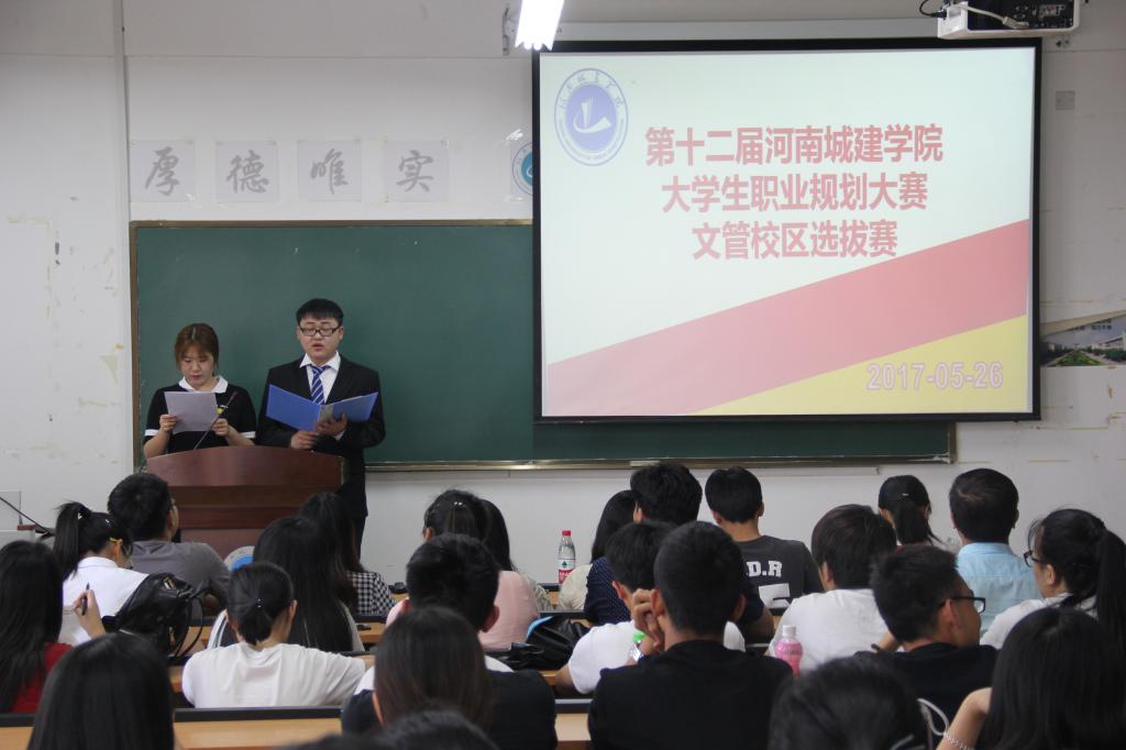 (通讯员 张换成)5月26日下午,由外国语学院承办的河南城建学院第十二届大学生职业规划大赛文管校区选拔赛于文管校区1号教学楼305教室拉开帷幕,外国语学院党总支副书记于修涛、校企合作办主任张换成和来自艺术设计学院、法学院、外国语学院的学生代表共同观看了比赛。比赛特邀文管校区各学院教师代表及校大学生职业生涯规划协会、校学生会、校广播站负责人及第十一届职规大赛优秀选手担任评委。