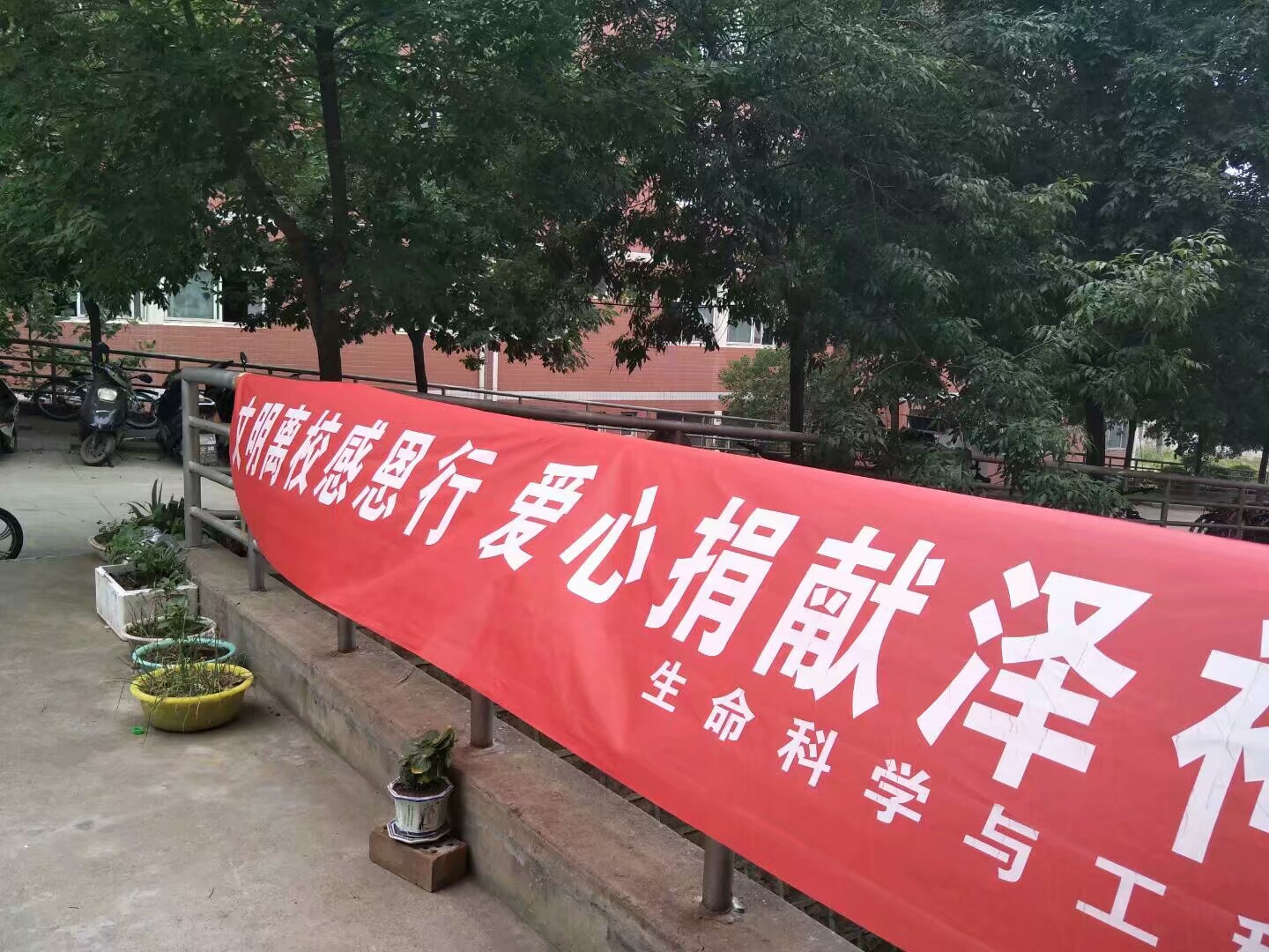 (通讯员 闫林源)又是一年毕业季,为感恩母校,树立文明离校之风,深化文明离校意识,提高毕业生文明离校行为,为以后的毕业生文明离校立下榜样,生命科学与工程学院在5月28日至29日期间,于二区五号女生宿舍楼及三区二号男生宿舍楼,开展了题为“文明离校感恩行,爱心捐献泽神州”爱心捐赠活动。