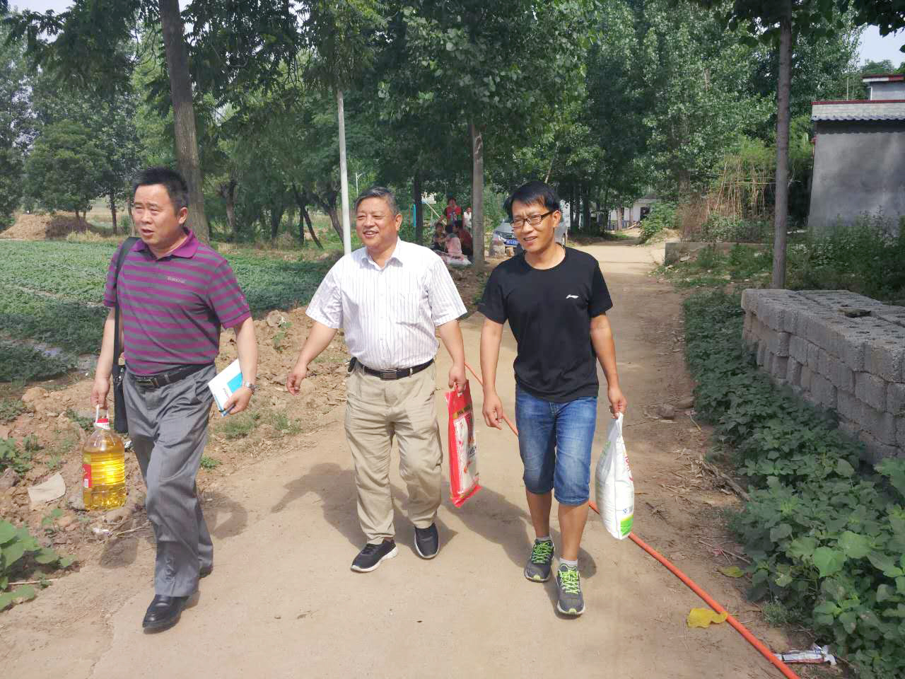 随后在孙方行的带领下,他们深入唐庄余会益和张秀洁家中,送去了面粉、大米、食油等慰问品,并与他们进行了亲切的交谈,详细了解了家庭人口状况、住房情况、耕地面积、家庭收入、贫困状况、脱贫诉求等;并在交谈中着重传达了党中央精准扶贫的战略意义,以及我校党委开展精准扶贫的决心和脱贫攻坚工作具体措施。