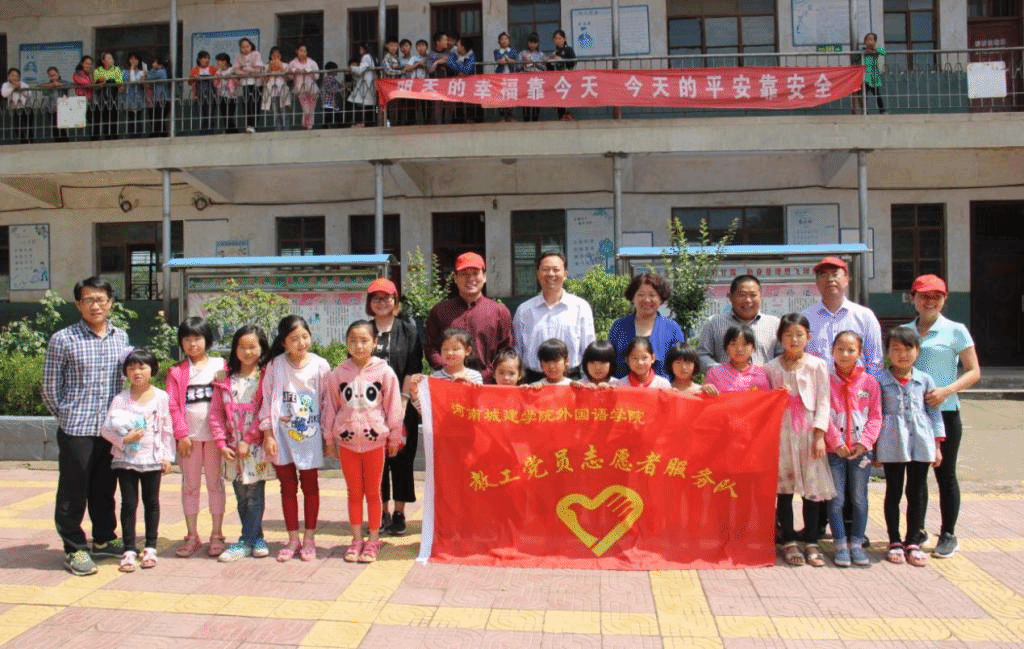 (通讯员 张枭枭)6月6日上午,外国语学院教工党员赴鲁山县库区乡搬走岭村开展“送温暖”志愿服务活动。该院党总支书记袁晓、院长秦平新、党总支副书记于修涛、科研和校企合作办主任张换成、学工办主任田果果、辅导员张枭枭参加了此次活动。