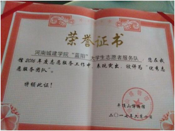 (通信员 宁蕴绯 孔春杰)6月10日,平顶山市博物馆对电气与控制工程学院蓝阳志愿者服务队及先进个人予以表彰。