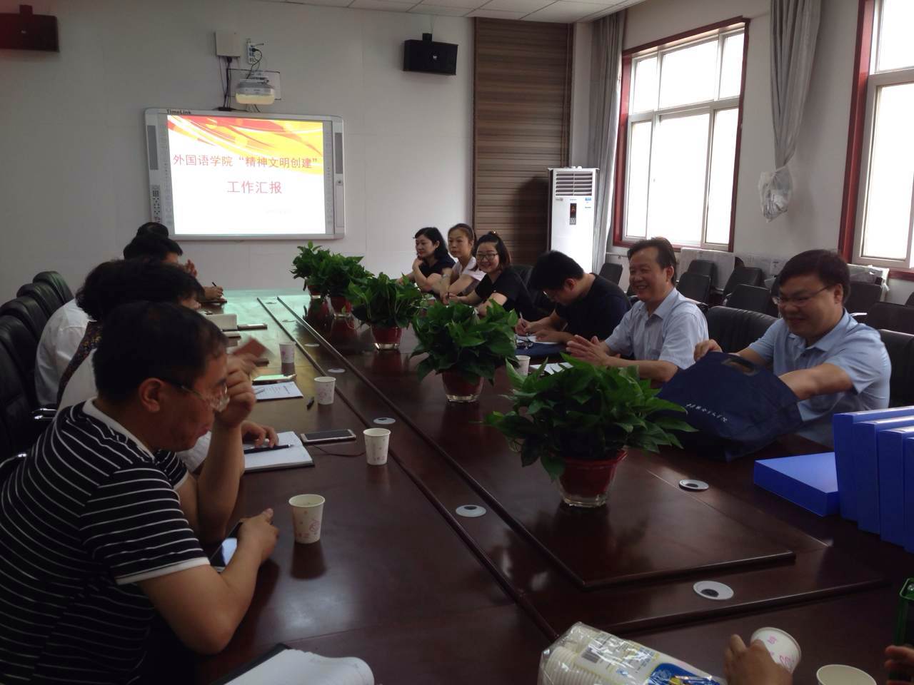 (通讯员 代博君)6月22日上午,我校精神文明创建考核小组一行来外国语学院进行考核。院党政领导班子、全体科级干部参加会议。