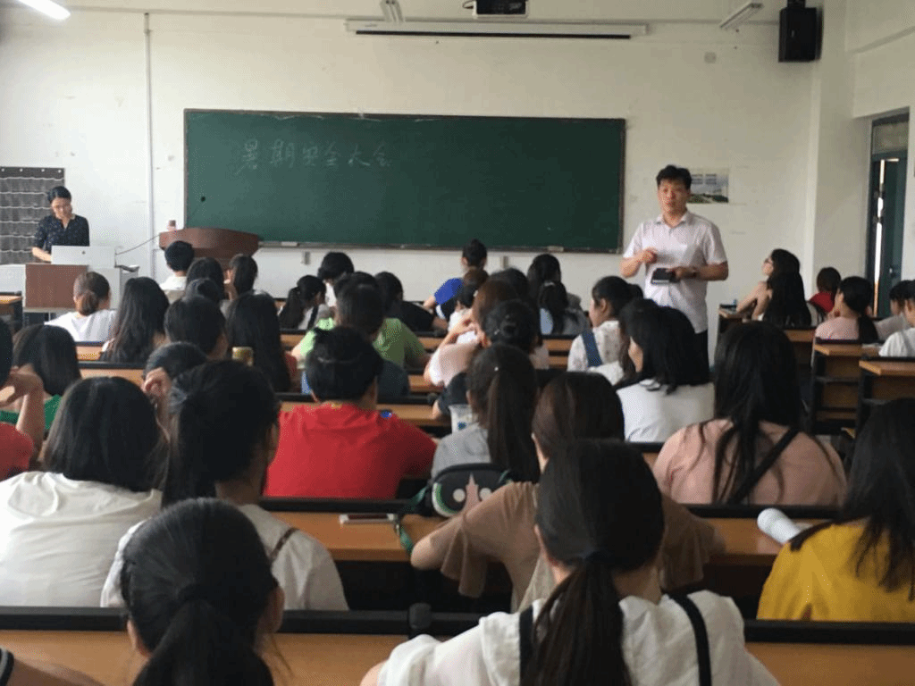 于修涛重点围绕交通安全、出游安全、饮食卫生安全、财产安全等进行重点教育,并通过讲述事例引导同学们如何及时防范、远离危险源等。他希望学生们要从思想上高度重视安全的重要性,提高自我保护能力,强调严格执行请销假制度,做好离返校的统计工作,同时提醒留校学生要加强假期期间宿舍的安全,注意防火防盗,消除安全隐患。