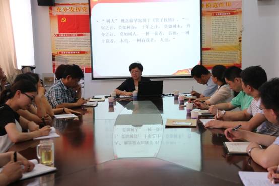 王靖讲述了立德树人的历史渊源,结合名家名言和经典案例,对“立德”“树人”进行了详细解读。她指出“立德”就是先辈时期提出的“三不朽”,是中华民族的核心观念, “树人”就是要教育人、改变人、培养人、发展人。她从四个方面阐述了党员教师如何实践立德树人,一是要着眼于树立共产主义理想和信念;二是要灵活运用当今历史,文化和国情;三是要将课程之间的协调效应作为支撑点;四是把旗帜复兴与润物无声有机统一。