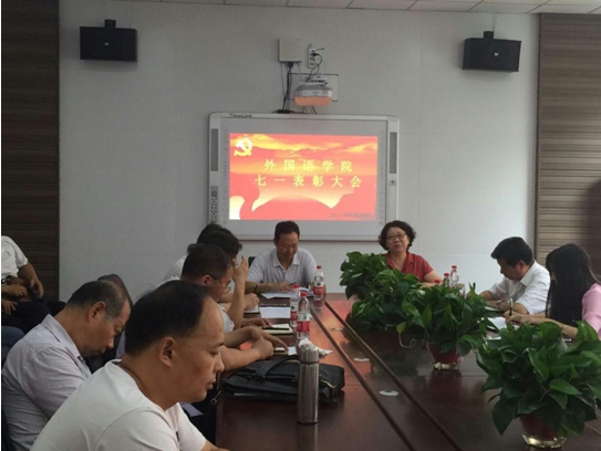 (通讯员 张枭枭)为进一步发挥先进基层党组织和优秀共产党员的先锋模范作用,增强党员教师党性意识,深化“两学一做”学习教育,6月30日,外国语学院在文管校区一号教学楼326会议室召开“七一”表彰大会。大会由学院党总支副书记于修涛主持,全体党员教师参加了此次会议。