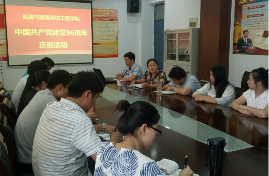 (通讯员 王培)为庆祝中国共产党成立96周年,不断推进“两学一做”常态化、制度化,抒发爱党爱国的高尚情怀,激发同志们争当模范、干事创业的热情,7月1日上午,能源与建筑环境工程学院在会议室组织开展了“中国共产党建党96周年庆祝活动”,学院领导班子成员以及部分教师和学生党员代表参加了本次活动。