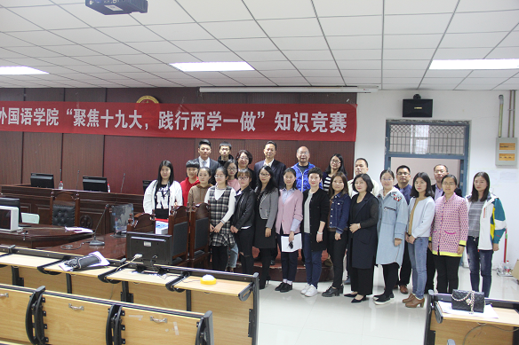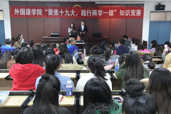 (通讯员 张换成 王莉)为进一步贯彻全面从严治党,推动“两学一做”学习教育常态化制度化,引导广大党员教师和学生坚定理想信念,增强党员党性修养,10月24日下午,外国语学院党总支组织全体党员在文管校区121多媒体教室开展了以“深度聚焦十九大,不忘初心跟党走”为主题的“两学一做”知识竞赛活动。学院党总支书记袁晓、院长秦平新、党总支副书记于修涛与全体教师和学生代表共同观看了比赛。