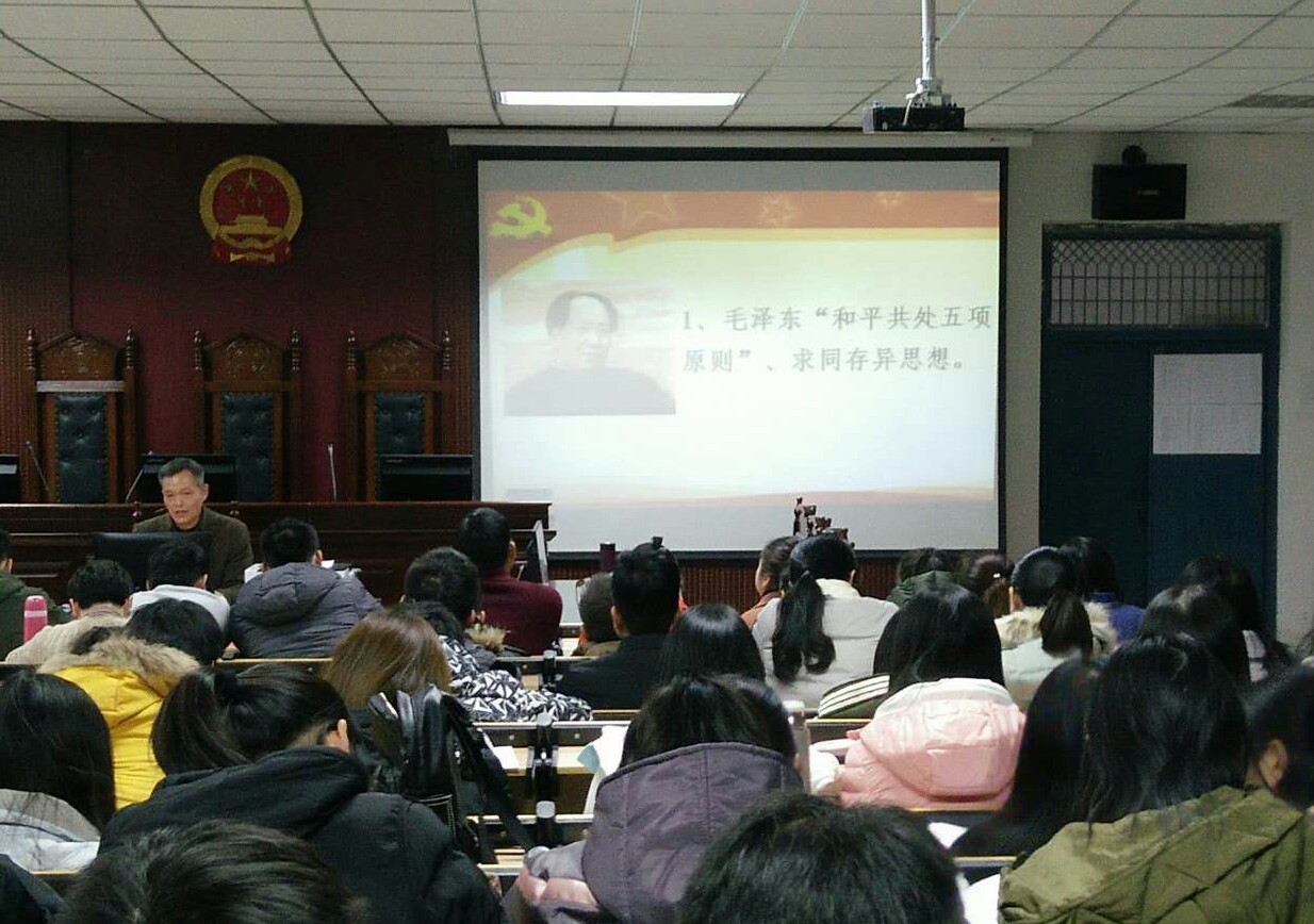 (通讯员 张换成)为进一步把学习宣传贯彻党的十九大精神引向深入,积极推进党的创新理论成果的“三进”工作,按照校党委的部署,12月13日下午,外国语学院联合法学院、数理学院共同邀请校十九大宣讲讲师团成员陈振国博士在文管校区121多媒体教室作学习贯彻党的十九大精神辅导报告。外国语学党总支书记袁晓、院长秦平新和法学院、数理学院相关领导及三个学院全体教师党员、辅导员和学生党员参加了本次活动,报告由袁晓主持。